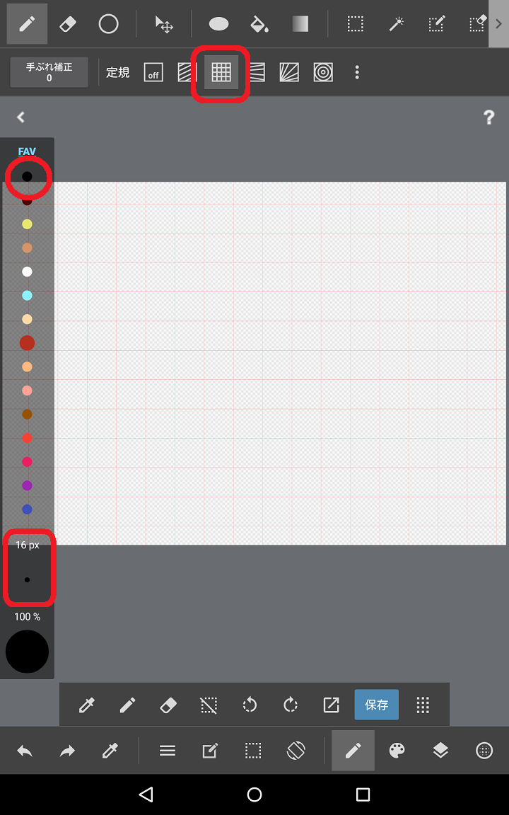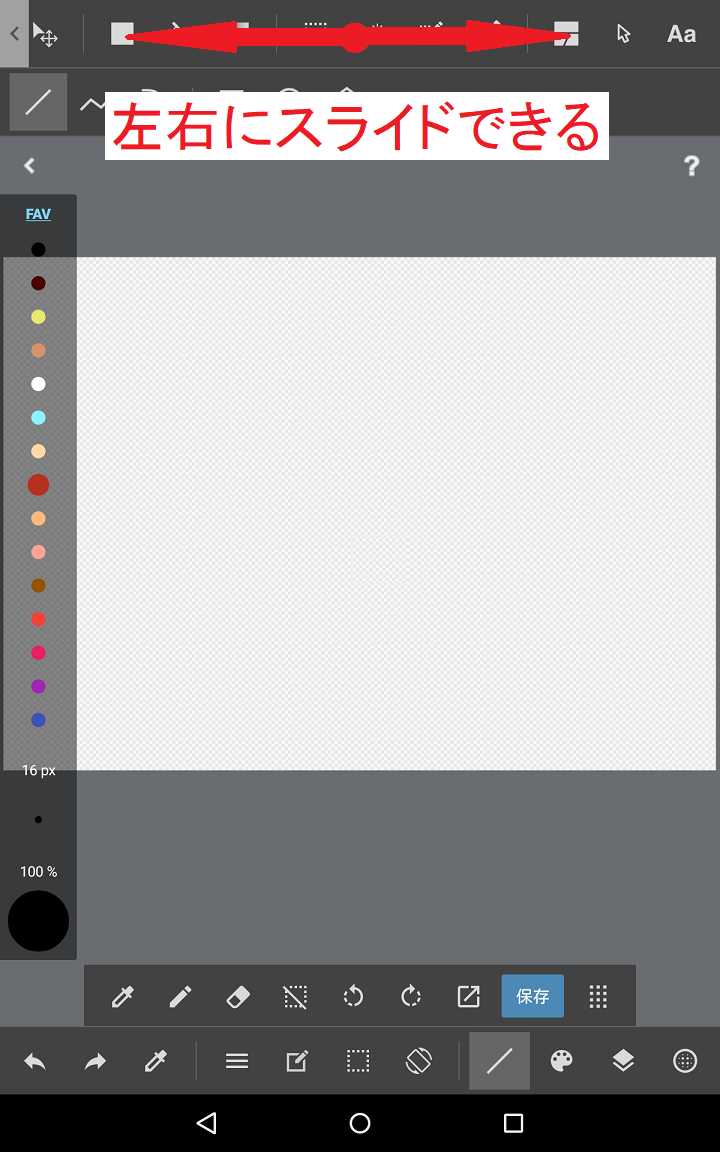 4、『色選択バー』の<FAV>の中から線の色を選びタップし、<数字+px>をスライドさせて線の太さを決めます。