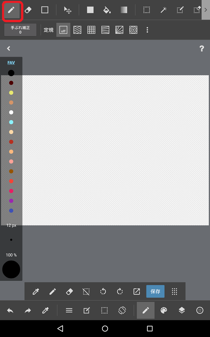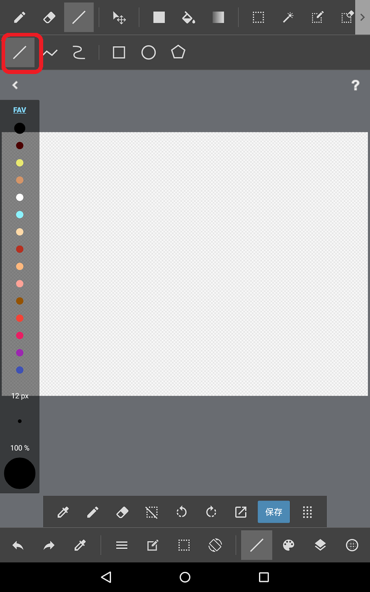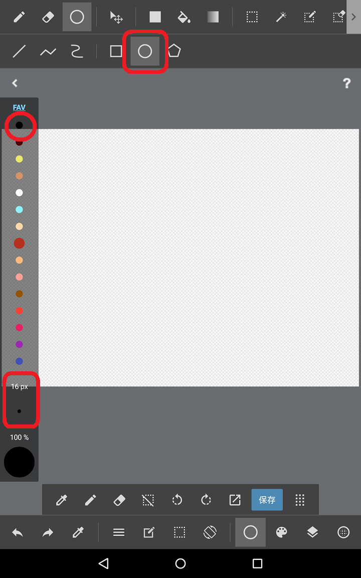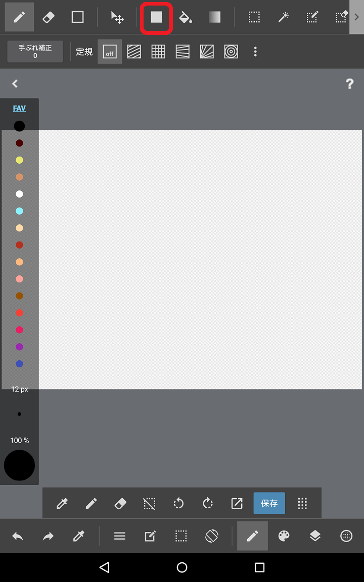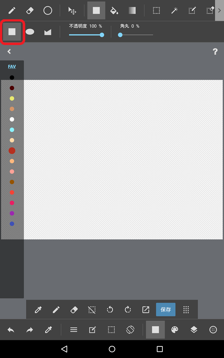 ※図形アイコンは前の作業の状態によって絵が四角だったり円だったりします。消しゴムアイコンの右横にあるのが図形アイコンです。