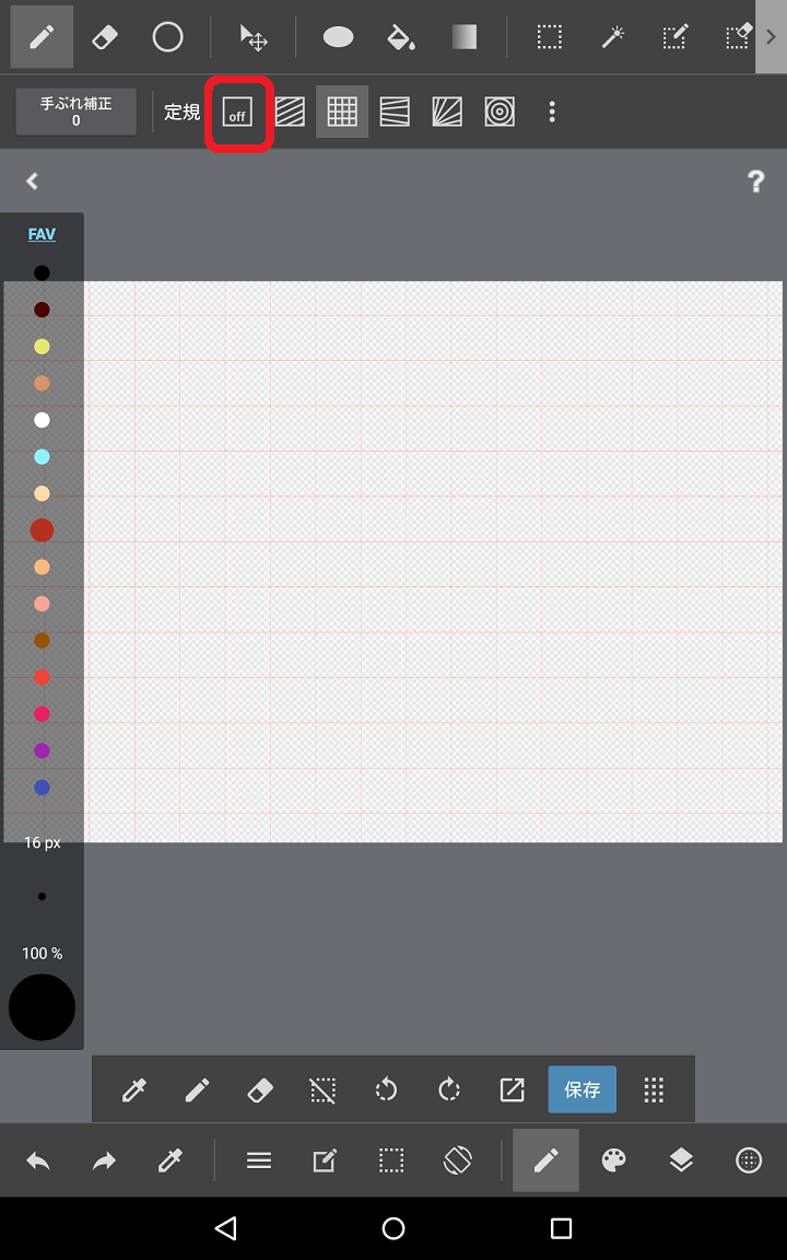 3、定規機能を解除する時には、『定規メニュー』から<off>をタップします。