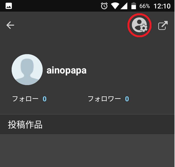 1、アカウント作成後にホーム画面を表示し<人型アイコン>をタップします。