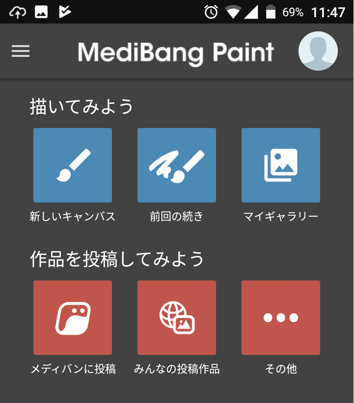 プロフィール編集は強制ではないので、編集を行わなくてもメディバンペイントを使用することは可能です。