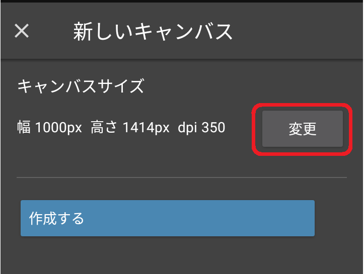 10、キャンバスサイズが入力した値と同じになっていることを確認し<作成する>をタップします。