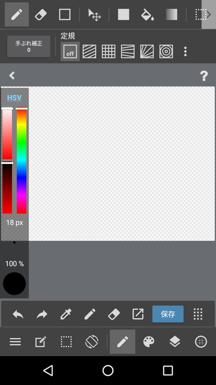 キャンバスサイズの入力に問題が無ければ、下の画像のような入力画面が出現します。これがメディバンペイントの『編集画面』です。